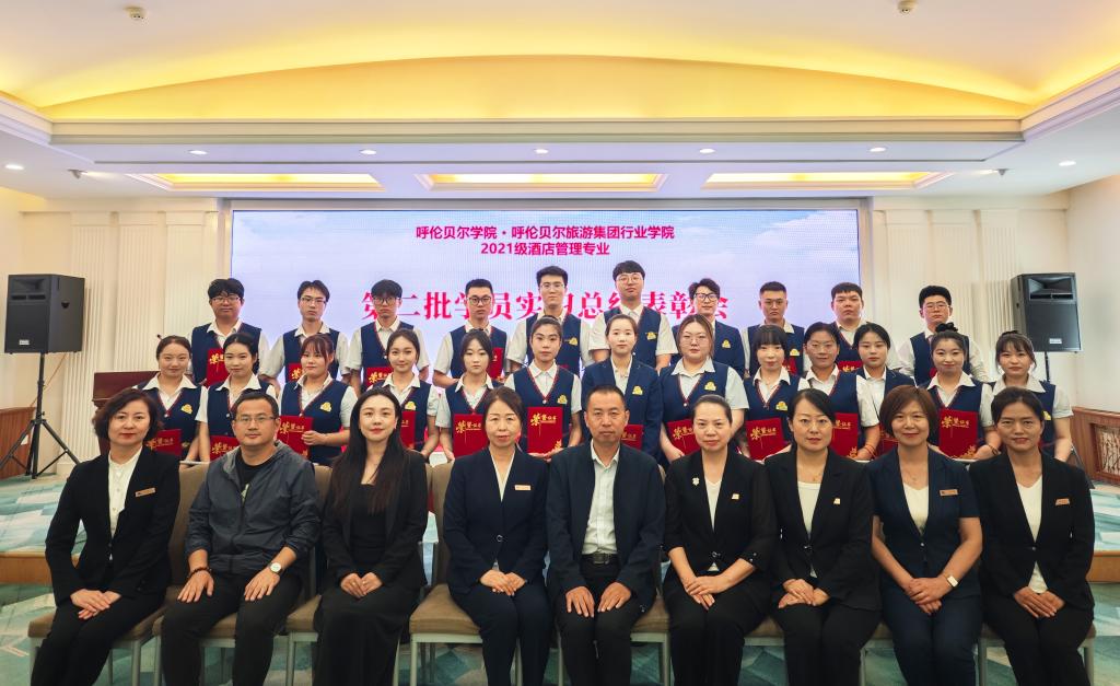 9月6日,1683168 3诸侯快讯入口·呼伦贝尔旅游集团酒店管理学院在呼伦贝尔宾馆召开2021级酒店管理专业第二批实习生总结表彰会。旅游地理与历史文化学院党总支书记赵金辉、副院长徐舒静、酒店管理系主任石磊,呼伦贝尔旅游集团董事长兼总经理卢晓辉、呼伦贝尔旅游集团行政总监赵永宏及其企业中层管理者参加会议。