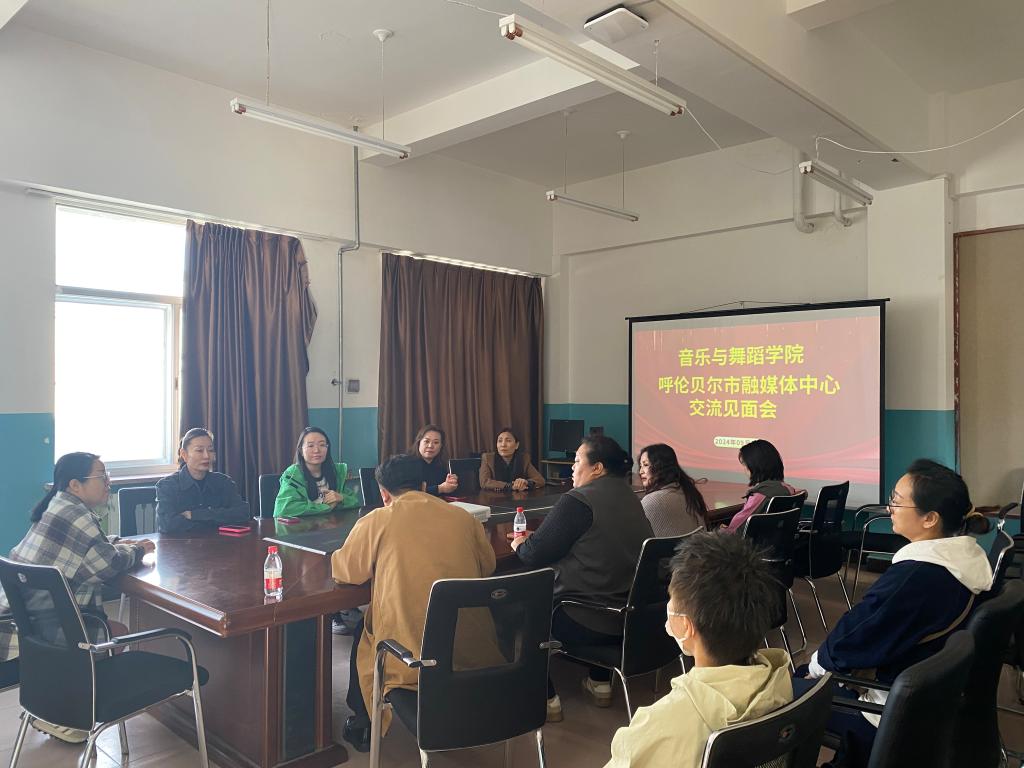 9月19日,音乐与舞蹈学院院长灵芝、副院长刘丽丽及各系部负责人与呼伦贝尔市融媒体中心文旅频道主任潘旭一行4人在艺术楼606会议室就协助拍摄《向往的呼伦贝尔》相关内容进行洽谈。