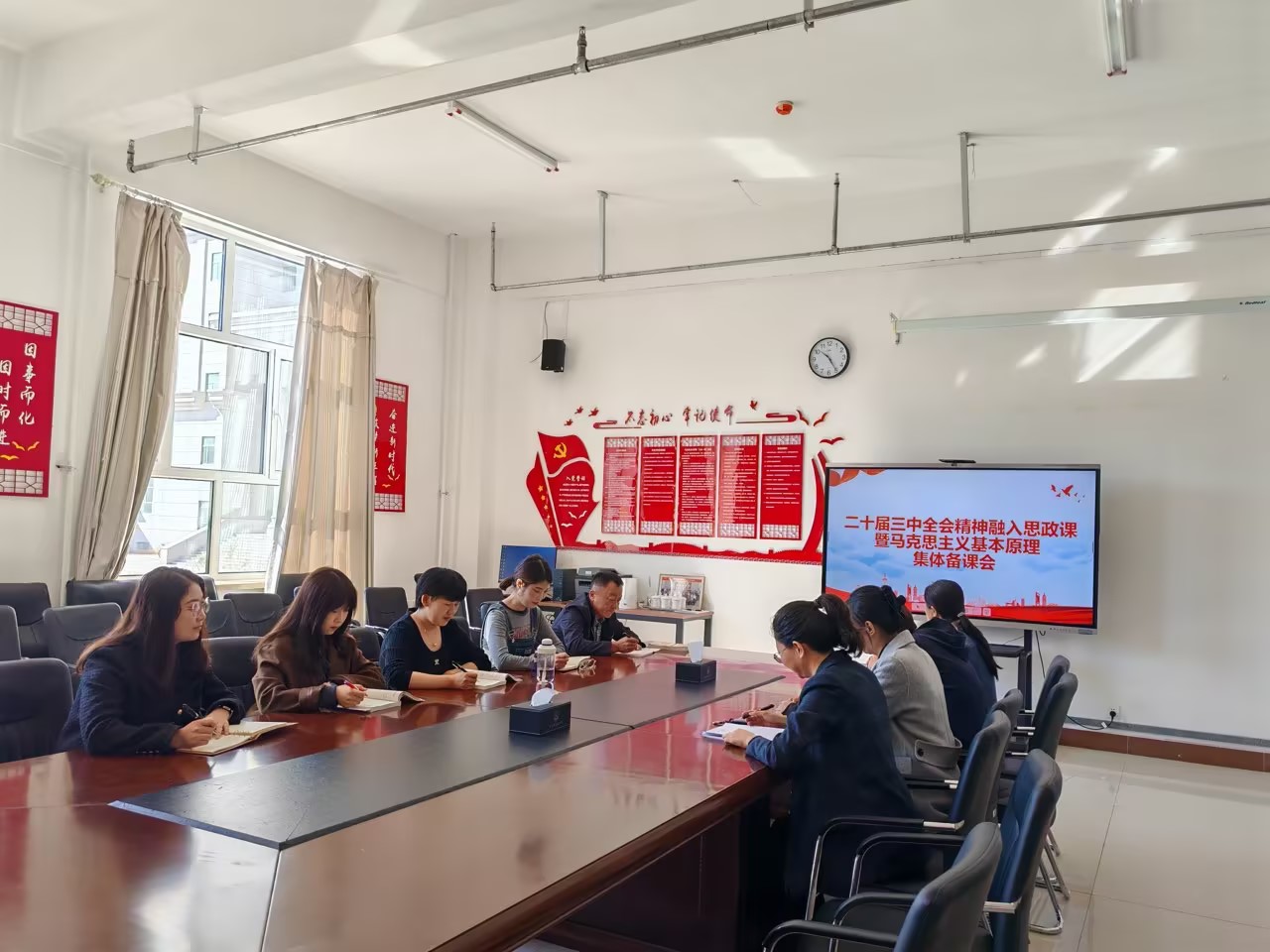 为深入学习和贯彻党的二十届三中全会精神,积极响应党中央关于在新时代背景下加强学校思想政治理论课改革创新的重要指示,马克思主义学院《马克思主义基本原理》教研组于9月20日上午在崇文楼B座123会议室召开备课会。学院副院长明兰及全体课程组教师参会。