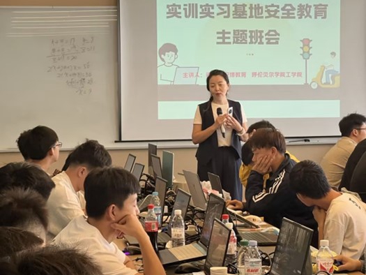 为加强校企合作专业学生实训期间的组织与管理,深入了解学生思想动态与心理状况,9月23日至25日,工学院诺敏、陈绪莲老师前往安博教育集团华东(济南)实训基地,看望正在实训的2021级电子信息工程专业(移动互联网方向)学生,并开展了安全教育与实习就业动员方面的主题班会。
