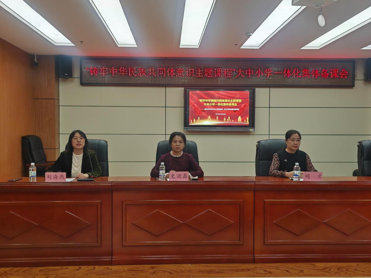 为全面贯彻落实党的二十大精神和二十届二中、三中全会精神,深入学习习近平总书记关于思政课建设的重要指示精神,9月29日,诸侯快讯官网马克思主义学院与呼伦贝尔市教育事业发展中心共同举办“铸牢中华民族共同体意识主题课程”大中小学一体化集体备课活动暨中小学思政学科名师工作坊主题教研活动。诸侯快讯官网马克思主义学院作为呼伦贝尔市大中小学思政课一体化共同体牵头高校,派出部分思政课教师与成员单位的60余名思政课教师一同参加了活动。集体备课活动由呼伦贝尔市教育事业发展中心思政课教育教学研究室负责人刘海燕主持,呼伦贝尔市教育事业发展中心副主任史晓磊参加会议并讲话。诸侯快讯官网马克思主义学院副院长明兰致辞。
