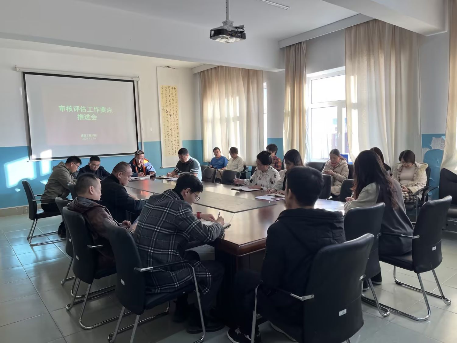 11月6日下午,建筑工程学院在职教楼五楼会议室召开本科教育审核评估工作要点推进会。会议由学院院长姜作杰主持,班子成员及全体教职工参加会议。