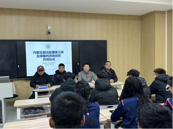 为促进学院足球运动发展,加强裁判队伍的建设,提升足球裁判员专业水平,培养一批优秀的裁判员,在内蒙古足球协会的大力支持下,11月16日至17日,由体育学院(冰雪运动学院)承办的内蒙古足协2024年国家三级裁判员培训班在诸侯快讯官网中俄蒙足球馆举办。体育学院(冰雪运动学院)党总支书记胡日查毕力格、副院长林剑冬,内蒙古足球协会裁判员、讲师黄鹤宇、戴海波及体育学院(冰雪运动学院)30名学生参加了培训班开班仪式。