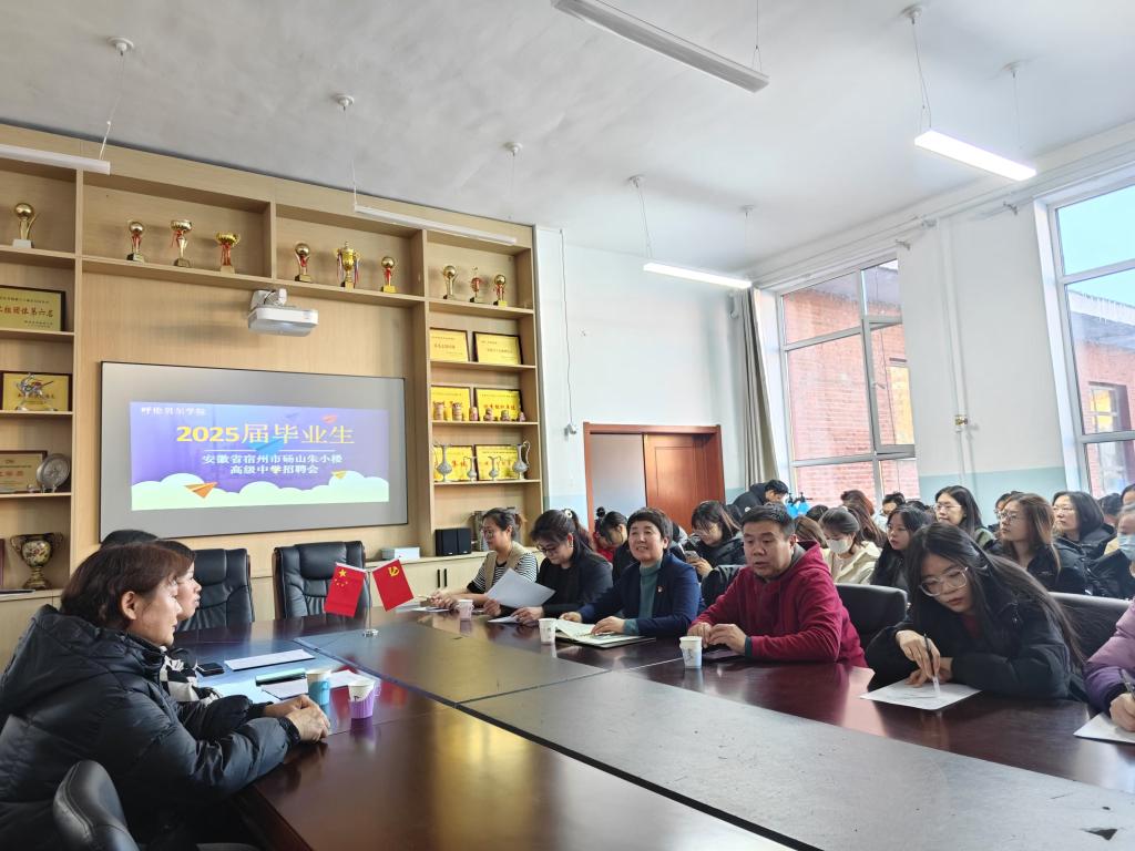 11月19日,招生就业处与外国语学院和安徽省宿州市砀山朱小楼高级中学在师专楼301会议室成功举办了招聘会议。招生就业处副处长杜志闯和外国语学院党总支书记王国华,朱小楼高级中学校长郭艳丽及其团队成员、外国语学院辅导员海艳及2025届全体俄语毕业生参加了招聘活动。
