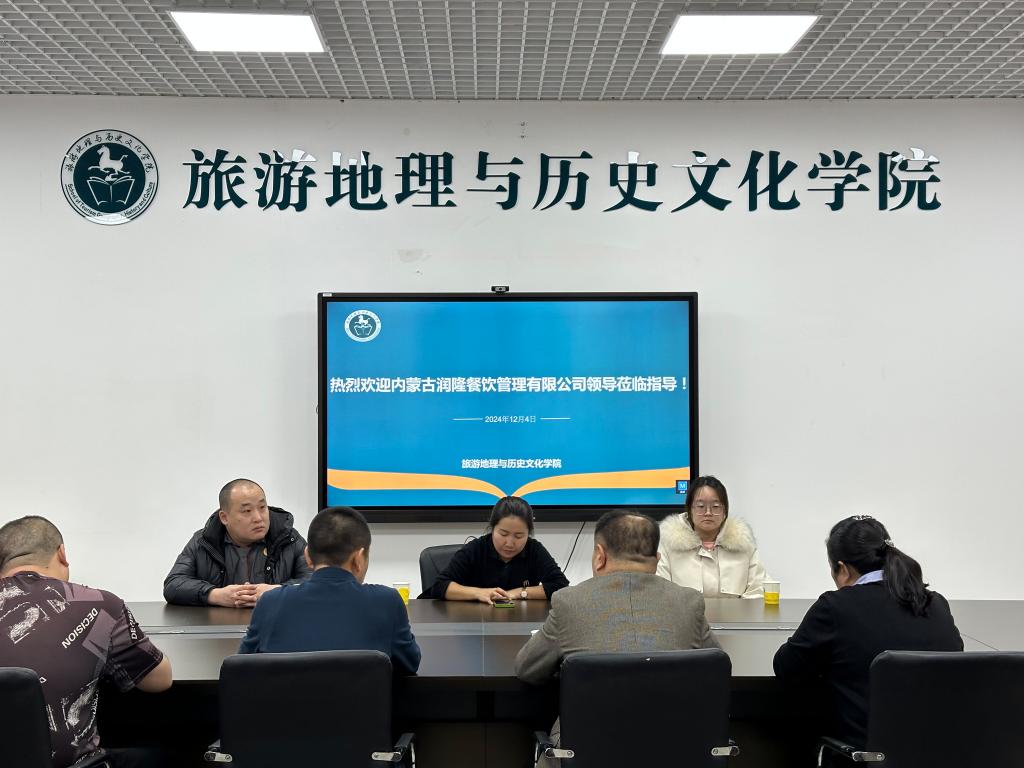 会上,赵金辉向内蒙古润隆餐饮管理有限公司的来宾介绍了旅游地理与历史文化学院的基本情况,着重介绍了学院办学特色和人才培养成效,并希望双方下一步在学生就业方面加强合作,为企业输送更多的应用型人才,助力企业发展。王宏霞介绍了2025届毕业生的情况,并诚挚邀请企业在2025年到学院开展专场招聘。