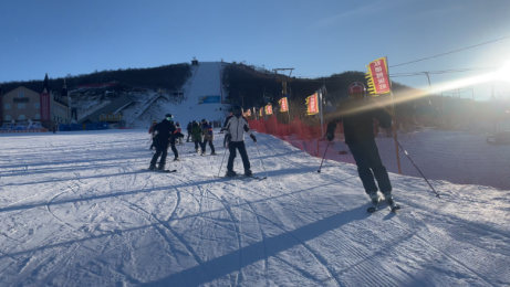 滑雪场的初级雪道上,同学们如一群欢快的小鸟,在老师的指导下,小心翼翼地尝试着向下滑行。他们努力保持着平衡。每滑出一段距离,他们的脸上便会绽放出灿烂的笑容,那是收获进步与成长的喜悦。