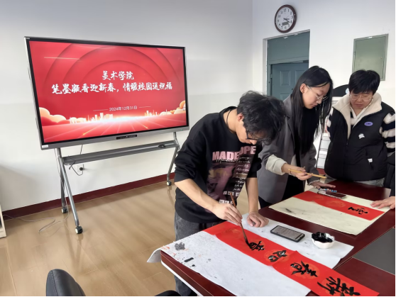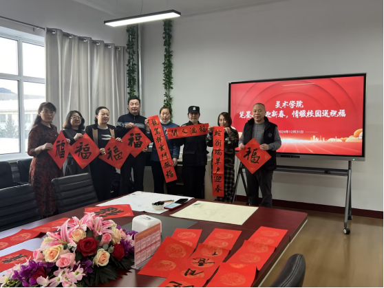 12月31日,美术学院党总支书记巴达日呼、院长何锡彭、党总支副书记张巍巍带领教工党员及学生,在学院309会议室开展以“笔墨情深迎新春,情暖校园送祝福”为题的主题党日,为保安、保洁和宿管群体送上了真挚的新春祝福,让这个冬日充满温情。