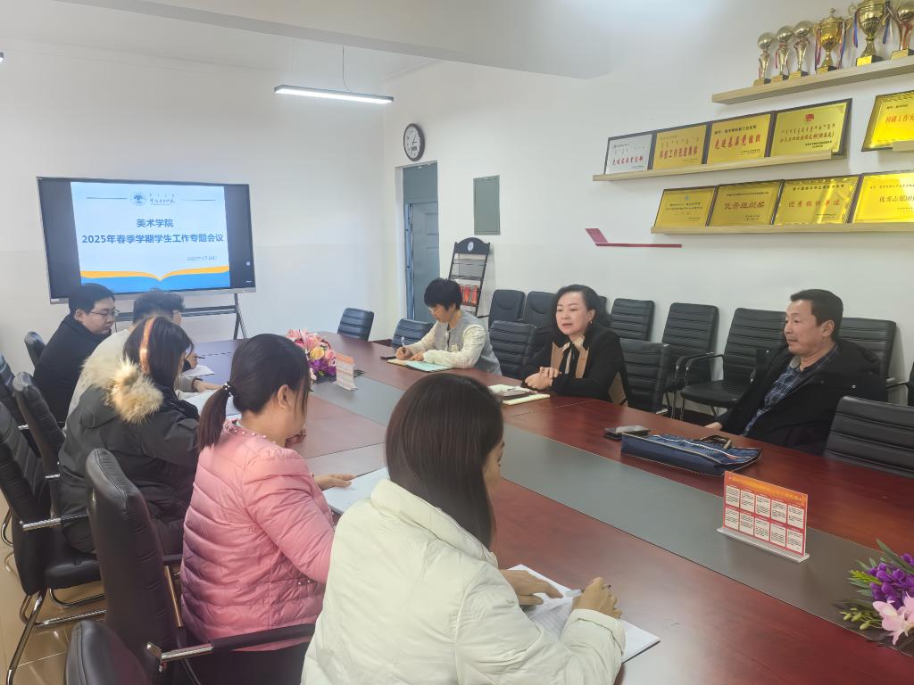 为统筹推进新学期学生工作,确保开学各项工作平稳有序开展,2月26日,美术学院在尚行楼会议室召开了2025年春季学期学生工作会议,安排部署近期工作。学院党总支书记巴达日呼、副书记张巍巍,团学办主任郎彩虹及专兼职辅导员参会,会议由张巍巍主持。