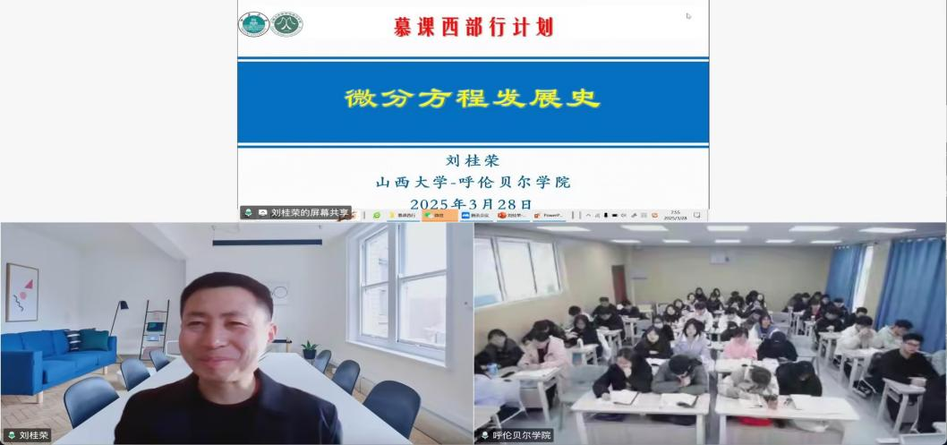 为响应教育部“慕课西部行计划”的号召,推动教育资源共享,促进东西部高校教育协同发展,3月28日上午,数理学院与山西大学数学与统计学院开启“慕课西行”同步课堂合作。此次合作借助先进的互联网技术,打破地域限制,让两校学子跨越千里,同上一堂课,共享优质教育资源。