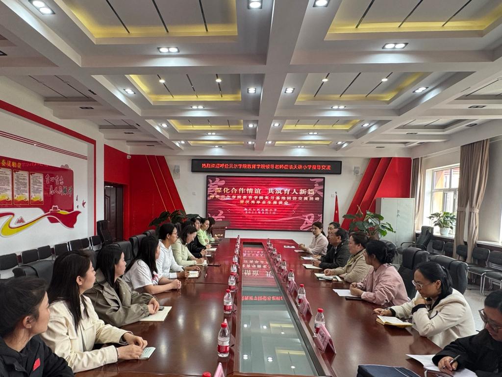 为扎实提升师范生培养质量,深化校地合作,5月7日,教育学院党总支书记海江、院长李伟艳率领学院班子成员、教育技术系和小学教育系骨干教师及相关环节干部先后前往海拉尔区第七中学和海拉尔区天骄小学,实地考察实践基地建设情况,并就校地共建、协同育人进行了座谈交流。