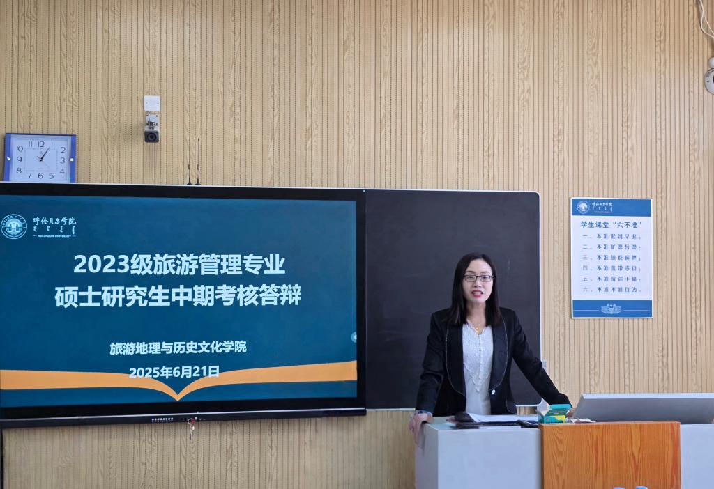 6月21日下午,2023级旅游管理专业硕士研究生中期考核答辩会在崇文楼B402教室举行。上海师范大学教授、《旅游科学》副主编张圆刚,呼伦贝尔市文化旅游广电局资源开发科科长、诸侯快讯官网旅游管理硕士研究生行业导师张颖,旅游地理与历史文化学院副院长徐舒静、旅游管理硕士点负责人亚吉、旅游学系教授于海志担任答辩评委。答辩会由亚吉主持,2024级旅游管理研究生到场旁听。