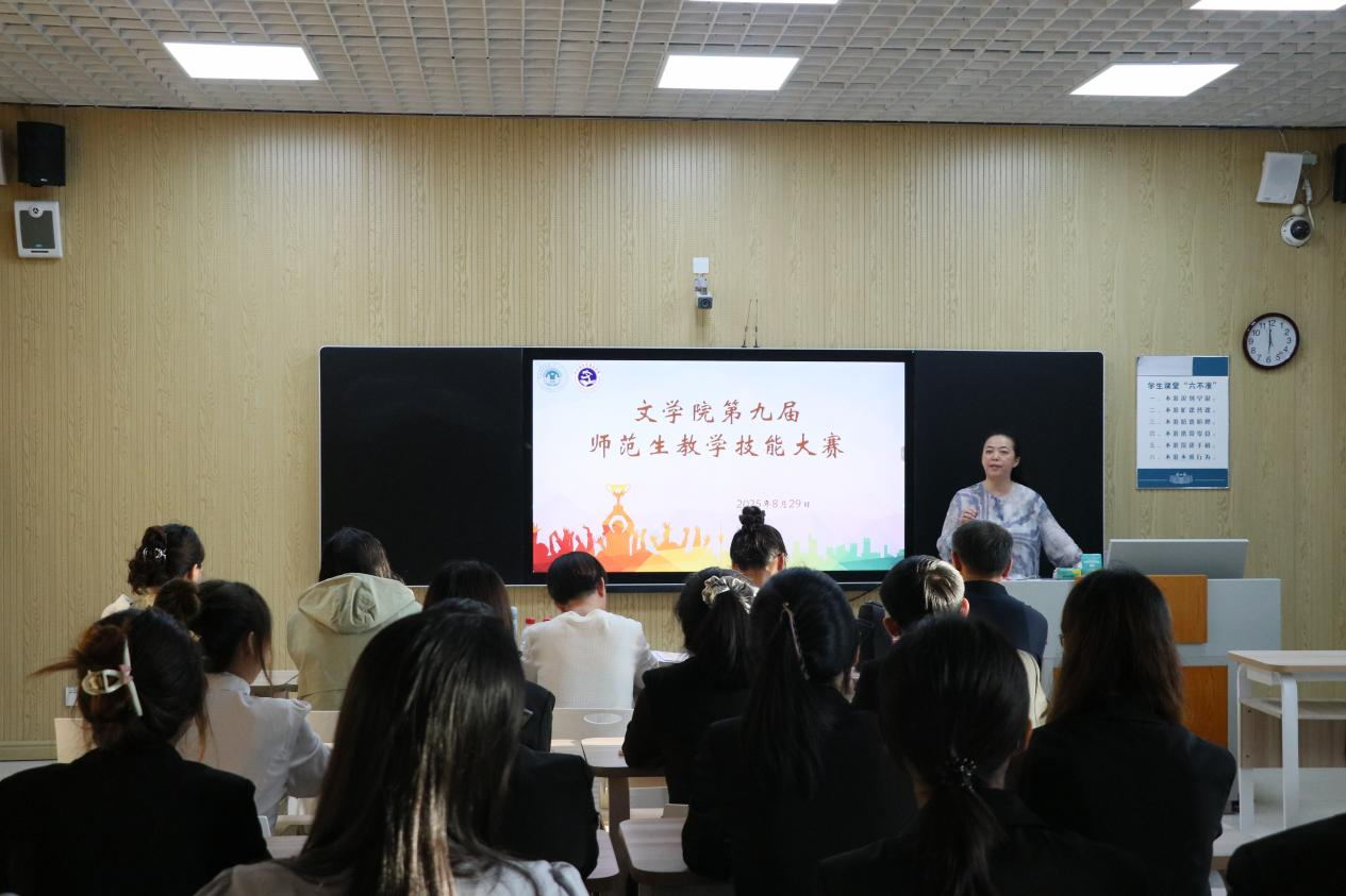 为深化师范教育改革,锤炼师范生教学实践能力,搭建专业成长与风采展示平台,8月29日,文学院在崇文楼B502室举办第九届师范生教学技能大赛。本次大赛涵盖说课、授课两大环节,全面检验选手的师范素养与教学综合能力。本次大赛特邀海拉尔第二中学语文教师葛文欢、李汇榛,文学院汉语言文学专业系主任李振羽、实验实训中心主任刘玉环、文学院方丽杰副教授担任评委。