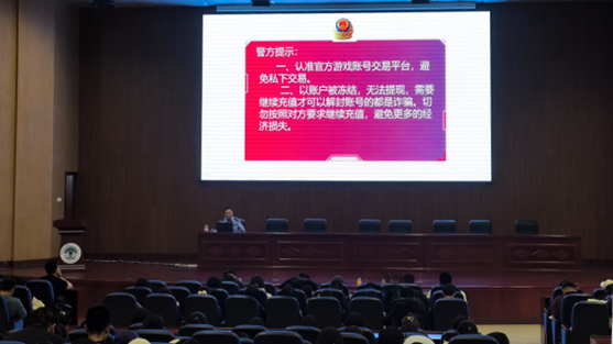 讲座中,吴靖结合辖区内发生的真实案例,以案说法,深入浅出地剖析了在大学生群体中多发的“刷单返利”“冒充客服”“虚假购物”“网络贷款”“冒充熟人/老师/家长”“游戏账号交易”等典型诈骗手法。他详细讲解了每种诈骗类型的作案流程、话术特点以及关键环节,让学生们对各类骗局有了更直观、更深刻的认识。吴靖强调,防范电信网络诈骗,关键在于“不听、不信、不转账”,要时刻保持警惕,不轻信来历不明的电话、短信和链接;不随意透露个人身份信息、银行账户和验证码;遇到要求转账汇款的情况,务必通过官方渠道或当面核实。