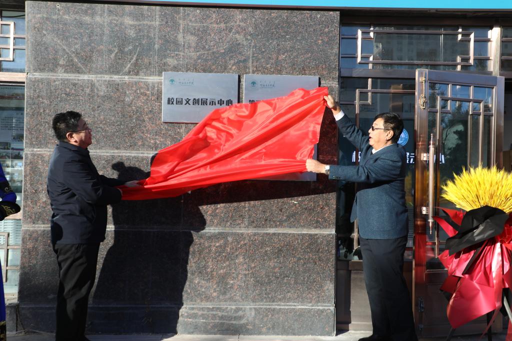 揭牌仪式上,王广利书记和李文阁校长共同为“1683168 3诸侯快讯入口校园文创展示中心”揭牌。