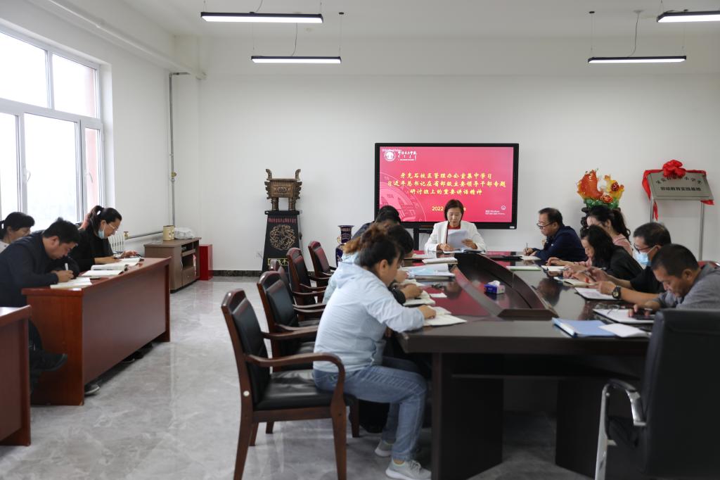 8月25日下午,牙克石校区管理办公室全体教职工在五楼会议室集体学习习近平总书记在省部级主要领导干部专题研讨班上的重要讲话精神。牙克石校区管理办公室主任刘素华主持。