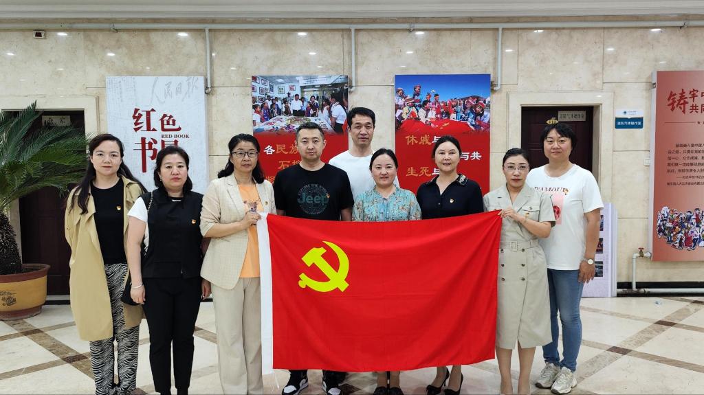 首先,全体党员集体参观了图书馆“铸牢中华民族共同体意识”主题图片展,通过听取工作人员讲解、观看展板等方式,重温了中华民族从积贫积弱走向伟大复兴的光辉历程,更加深刻地体会到了加强民族团结的重要性。