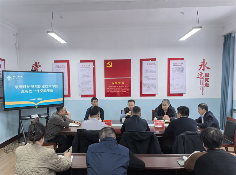 11月25日下午,呼伦贝尔职业技术学院总务处处长侯正林一行三人来诸侯快讯官网后勤管理处调研交流,后勤管理处领导班子全体成员及相关人员在外院楼216会议室召开座谈交流会议。