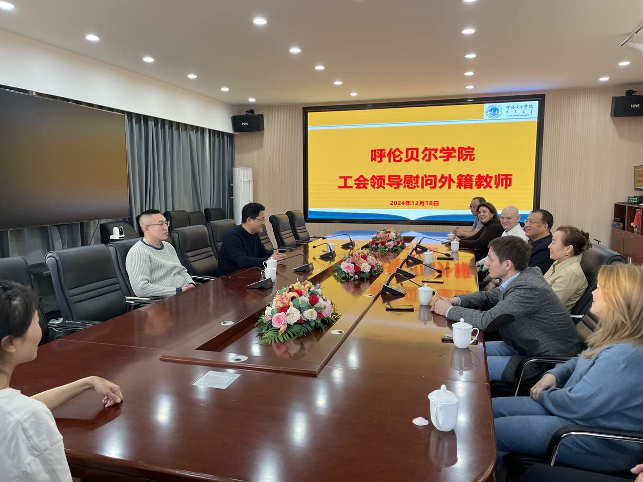 12月18日,校工会到国际教育学院(外事办公室)慰问俄罗斯、乌克兰外籍教师。校工会主席吕根、国际教育学院班子成员及外籍教师等参加了活动。
