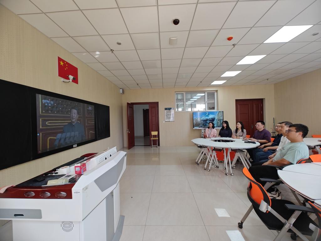 观看过程中,党员们专注聆听大会讲话,认真观看阅兵仪式:从受阅部队整齐的方阵与先进装备的钢铁洪流中,每一个画面都生动呈现了中华民族在复兴之路上的坚实足迹。自主研发的尖端武器、数字化的指挥系统、威武的仪仗方队、现代化的后勤保障,不仅彰显了中国近年来在科技、军事与综合国力上的跨越式发展,更诠释了“能战方能止战”的深刻内涵——唯有自身强大,才能为世界和平筑牢屏障。当看到受阅方队迈着正步走过天安门,党员们深刻感受到那不仅是对历史的告慰,更是对未来的承诺——中国将以更强大的实力守护和平,以更开放的胸怀拥抱世界,在纷繁复杂的国际局势中,书写属于新时代的铁血荣光;当《和平进行曲》在广场上空回荡,当和平鸽带着彩带飞向蓝天时,大家更清晰认识到,中国纪念胜利是为了守护和平,展示力量是为了捍卫正义。