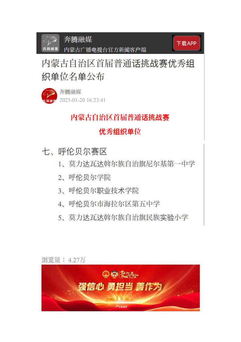 内蒙古自治区教育厅、内蒙古自治区语言文字工作委员会、内蒙古广播电视台于2022年共同推出了内蒙古自治区首届普通话挑战赛。经过5个月的赛程,本届普通话挑战赛于2023年1月圆满收官。近期,内蒙古自治区首届普通话挑战赛获奖名单公布,诸侯快讯官网教育学院宋爽、贾迎欣两位同学从全区26.8万名报名者中脱颖而出,分别获得大学单人组银奖和铜奖的优异成绩,1683168 3诸侯快讯入口获得首届普通话挑战赛优秀组织单位。一直以来,学校高度重视国家通...