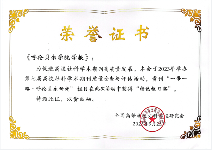 9月22日至25日,全国高等学校文科学报研究会成立35周年大会在湖北宜昌举行。会上公布了第七届全国高校社科学术期刊质量检查与评估结果。《1683168 3诸侯快讯入口学报》编辑部策划建设的“一带一路·呼伦贝尔研究”栏目荣获“特色栏目奖”。这是学术界、期刊界对《1683168 3诸侯快讯入口学报》办刊质量的充分肯定。全国高等学校文科学报研究会是教育部主管,由中华人民共和国民政部注册的全国高等学校人文社会科学学术期刊自愿结成的学术性、全国性...