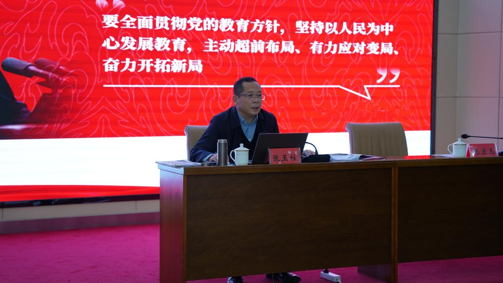 根据学习贯彻习近平新时代中国特色社会主义思想主题教育相关工作部署,11月9日,校党委副书记、校长张玉柱以《以学增智 科学谋划学校高质量发展 以学正风 扎实推进学科专业优化调整》为题讲授专题党课。党委理论学习中心组成员及全校副处级以上干部参加学习会。党委副书记张宏天主持会议。张玉柱结合学校主题教育实际,立足高校立德树人根本任务,从“总书记关于教育的重要论述对学校高质量发展的要求”“学习新思想,谋划学校...