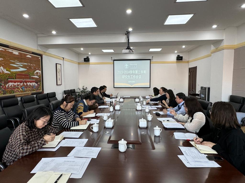 3月6日上午,学校在逸夫楼419会议室召开2023-2024学年第二学期研究生教学工作会议。校党委委员、副校长敖特根主持会议,各培养单位院长、分管研究生教育副院长、研究生教学秘书、研究生处全体成员参加会议。会上,研究生处负责人对2023-2024学年第一学期研究生工作进行了总结与回顾,汇报了近期研究生招生、培养等方面的工作进展,并强调了2024年春季学期主要任务及工作节点。各培养单位负责人就本单位在研究生教育管理工作中开...