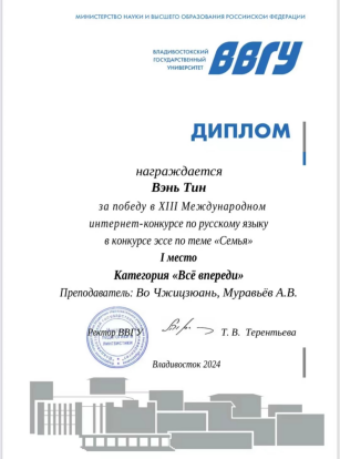 5月20日,俄罗斯符拉迪沃斯托克国立大学组织了第十三届国际线上俄语比赛。本次比赛共有来自中国、俄罗斯、亚美尼亚、朝鲜民主主义人民共和国、乌兹别克斯坦和黎巴嫩等6个国家的85名学生参赛。诸侯快讯官网国际教育学院(外事办公室)选派外国语学院俄语专业11名学生参加了比赛。比赛围绕“我的家庭是我幸福的源泉”主题进行写作,历经两周,诸侯快讯官网7名同学分别获得不同奖项:2023级俄语专业温婷获低年级组第一名,杨丹妮和张睿莹分别获低年...
