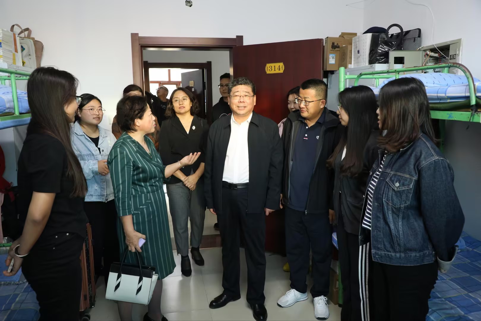 为进一步落实立德树人根本任务,推进“一站式”学生社区建设,深入了解学生生活和思想状况,9月6日下午,校党委书记李文阁深入3号学生宿舍楼走访调研,党政办公室、学生工作处负责人,马克思主义学院领导陪同调研。走访中,李文阁仔细察看宿舍居住环境、配套设施,并与马克思主义学院2023级学生亲切交谈,询问同学们在学习生活等方面情况,鼓励同学们相互学习,共同进步,努力拼搏,向成为“学霸宿舍”努力。他表示,学校将一如...