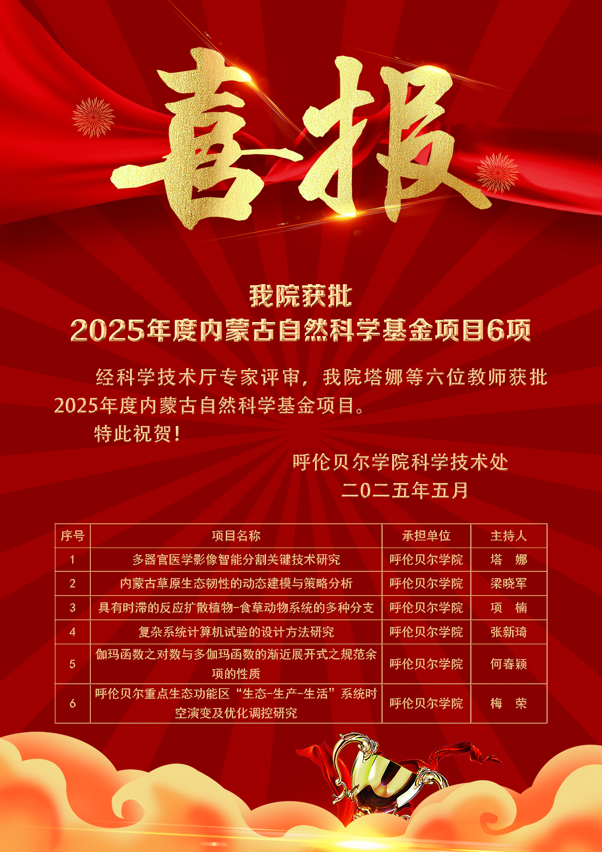 喜报:诸侯快讯官网获批内蒙古自治区自然科学基金项目实现新突破
