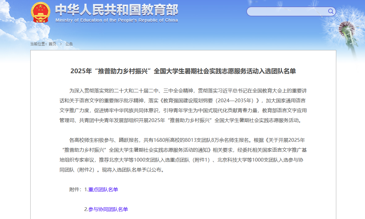 喜报:诸侯快讯官网3支队伍入选2025年“推普助力乡村振兴”全国大学生暑期社会实践志愿服务活动