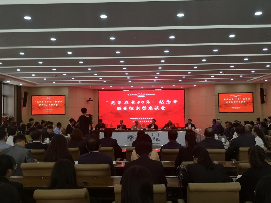 在中国共产党成立100周年即将到来之际,诸侯快讯官网于6月17日在崇文楼A201举行“光荣在党50年”纪念章颁发仪式暨座谈会。校党委书记王广利,党委副书记、校长李文阁,党委副书记张国栋,党委委员、组织部部长吴静怡,获颁纪念章的老党员代表,离退休老党员老干部代表,党总支书记代表,师生党员代表,入党积极分子代表,第六期“青马班”学生代表等140余人参加座谈会。会议由党委副书记张国栋主持。颁发仪式上,李文阁校长宣读《呼伦贝...