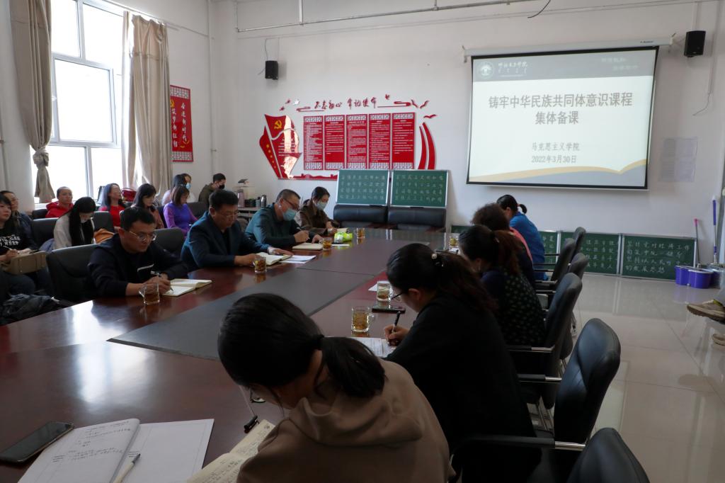 3月30日下午,马克思主义学院在崇文楼B123会议室召开铸牢中华民族共同体意识教研室集体备课会。校党委书记王广利,党政办公室主任吴宏伟、党委宣传部副部长刘金红,教务处副处长姜作杰,马克思主义学院班子成员及全体教师参会。马克思主义学院副院长吴秀芳主持会议。会上,马克思主义学院教研室主任海龙老师介绍了课程开设的基本情况。他根据内蒙古自治区2022年3月颁发的《铸牢中华民族共同体意识教学大纲(修订版)》,阐明...