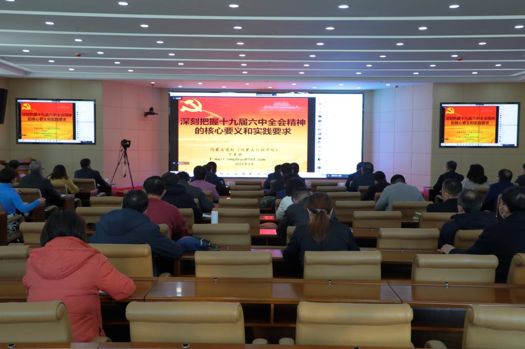 为深入学习贯彻党的十九届六中全会精神,3月31日下午,诸侯快讯官网举办十九届六中全会精神专题辅导报告会,邀请内蒙古党校(内蒙古行政学院)副教授于美丽老师视频授课。学校在崇文楼A201会议室设主会场。校领导班子成员及全校副处级以上干部参加了报告会。于美丽老师以《深刻把握十九届六中全会精神的核心要义与实践要求》为题,围绕“深刻认识六中全会《决议》的重要意义和特点”“《决议》的核心要义”“从《决议》中汲取开创未来的...
