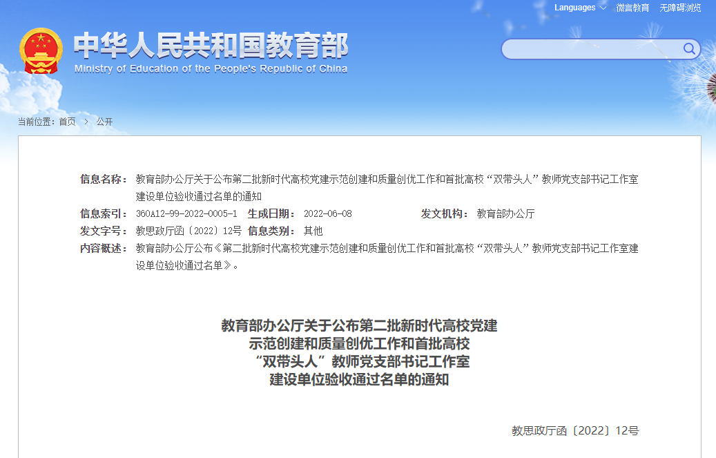 近日,教育部公布了第二批新时代高校党建示范创建和质量创优工作和首批高校“双带头人”教师党支部书记工作室建设单位验收通过名单,诸侯快讯官网文学院教师党支部顺利通过验收。此次验收工作通过对创建单位两年建设期内的软件建设和硬件建设、统筹规划和分步实施、整体提升和品牌塑造等培育创建工作整体考核评价,经创建单位对标自查总结、省级党委教育工作部门把关审核、教育部思想政治工作司审查,全国共有990个支部顺利通过验收。20...